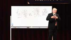 日本でのこれまでの経験や日本語のあいまいさがあることによっての面白さ、日本の文化・習慣の奥深さについて教えていただき、「自慢と謙遜のバランス」を考えながらこれからの国際社会を生きていきたいと思います。