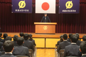 校長先生、生徒指導部より、一年の振り返りや冬季休暇中の過ごし方についてのお話がありました。