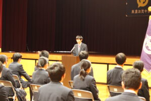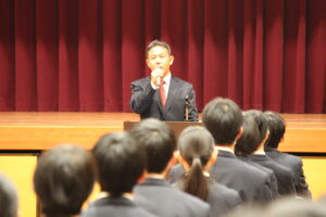 学校長や進路指導部長から3年生に向けて激励の言葉が送られました。また、同席した1・2年生(ドリカムコース・蛍雪コース)の代表者もエールを送りました。