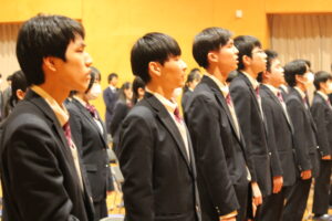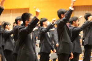 3年生の代表者が決意の言葉を述べ、最後に式に出席した全員で勝鬨や校歌斉唱をして士気を高めました。