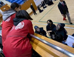 また、三日間の錬成会では男子は赤穂剣誠会(兵庫)・満濃中学校(香川)、女子は三瀬中学校(佐賀)のみなさんと一緒にチームを組み戦うことができ、大会では合同チームでの出場はできませんでしたが、試合会場まで応援にかけつけてくれ、一生懸命応援してくれました。本当にありがとうございました。